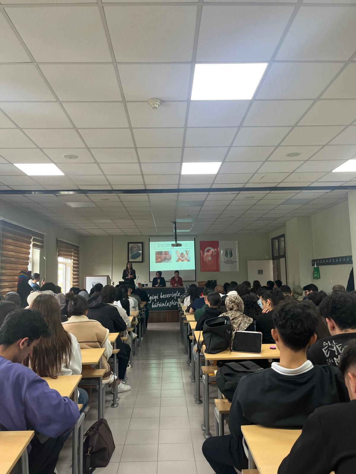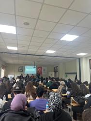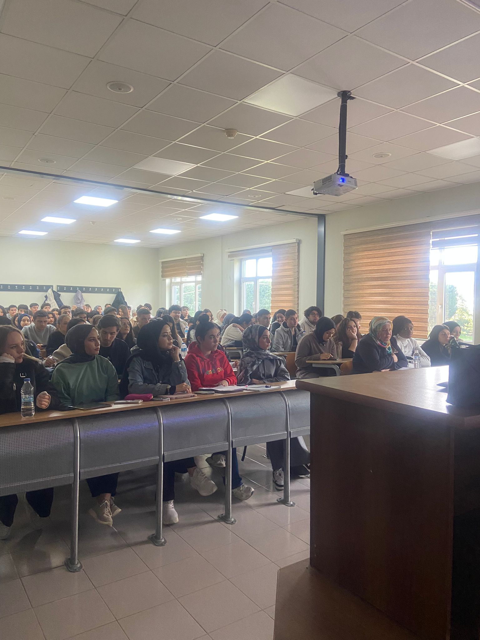 Eğitim semineri öncesinde SUBÜKAM birim temsilcimiz Dr. Öğr. Üyesi Yeliz KARADENİZ tarafından merkezimizi tanıtıcı kısa bir sunum yapıldı. Sakarya Aile ve Sosyal Hizmetler İl Müdürlüğü’nden Psikolog Şeyma YILMAZ tarafından gerçekleştirilen eğitim seminerinde, iletişim becerilerinin önemi, empati kurmanın kişiler arası ilişkilerde oynadığı kritik rol ve sağlıklı iletişimin temel ilkeleri üzerinde duruldu. Öğrenciler, iletişim ve empati konularına ilişkin örnek olaylar üzerinden çeşitli değerlendirmeler yapma fırsatı buldu. Seminerin sonunda öğrencilerden oldukça olumlu geri dönüşler alındı. Birçok öğrenci, empati ve etkili iletişim becerilerinin günlük yaşamlarındaki etkisini daha iyi anladıklarını ifade etti. Bu tür etkinliklerin, öğrencilerin iletişim farkındalığını güçlendirme ve kişisel gelişimlerine katkı sağlama açısından son derece değerli olduğu değerlendirilmektedir.