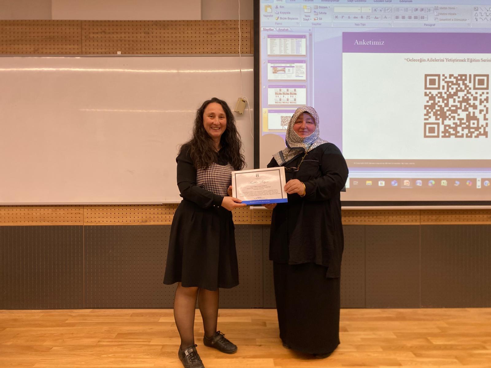 Etkinlik sonunda, katkılarından dolayı Psikolojik Danışman Gülşen Fatma DURSUN’a SUBÜKAM birim temsilcimiz Öğr. Gör. Ümmehan Erdil ŞAHİN tarafından teşekkür belgesi takdim edildi.