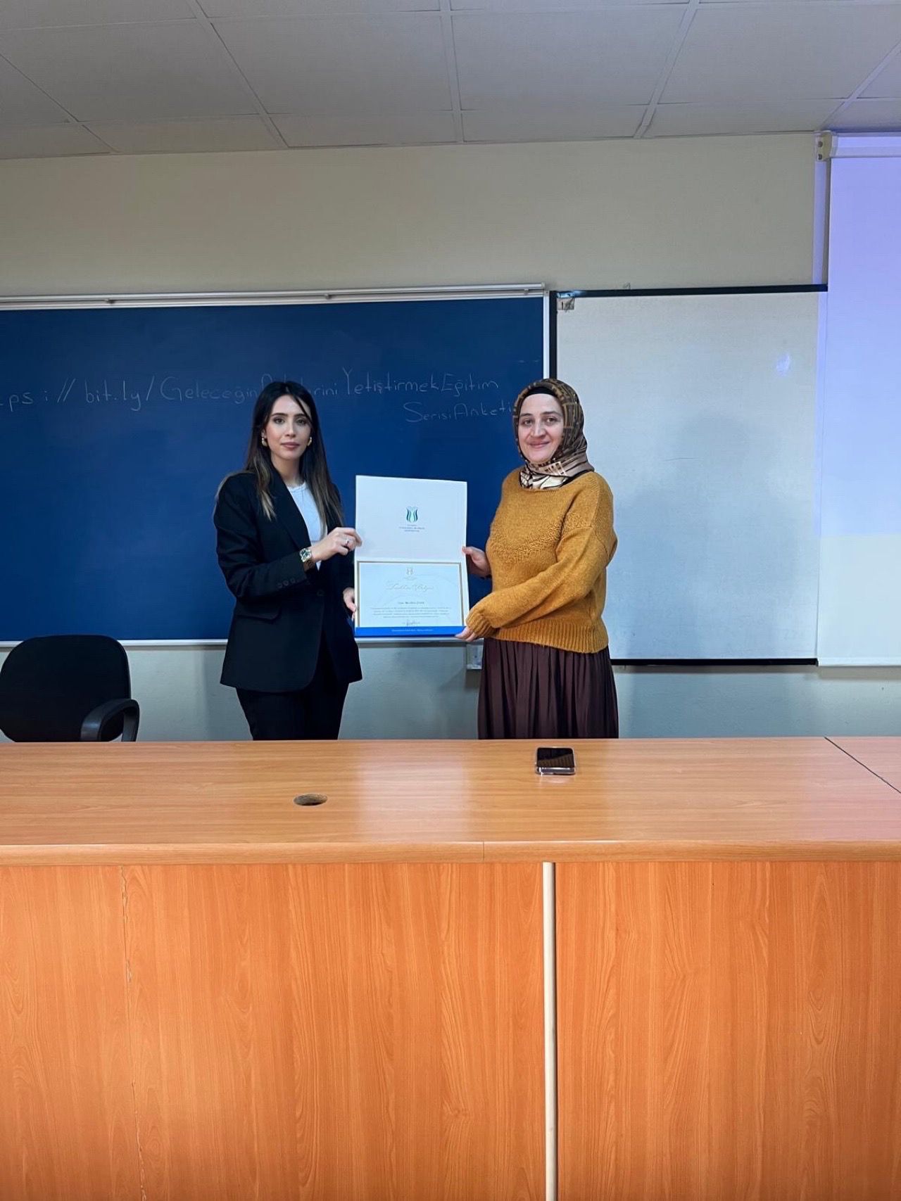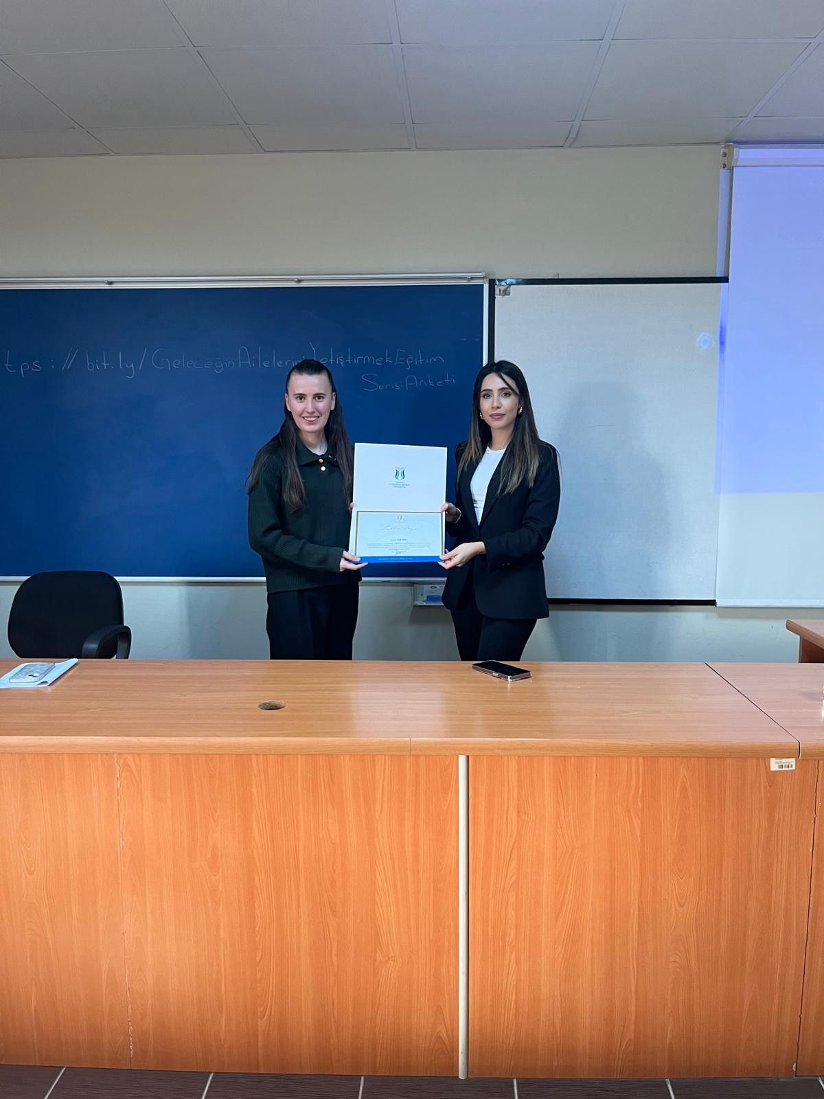 Etkinlik sonunda, katkılarından dolayı Sosyal Çalışmacı Elif ÖNAL’a ve Neslihan ÇINAR’a SUBÜKAM birim temsilcimiz Öğr. Gör. Dr. Arzu SÜREKÇİ tarafından teşekkür belgesi takdim edildi.