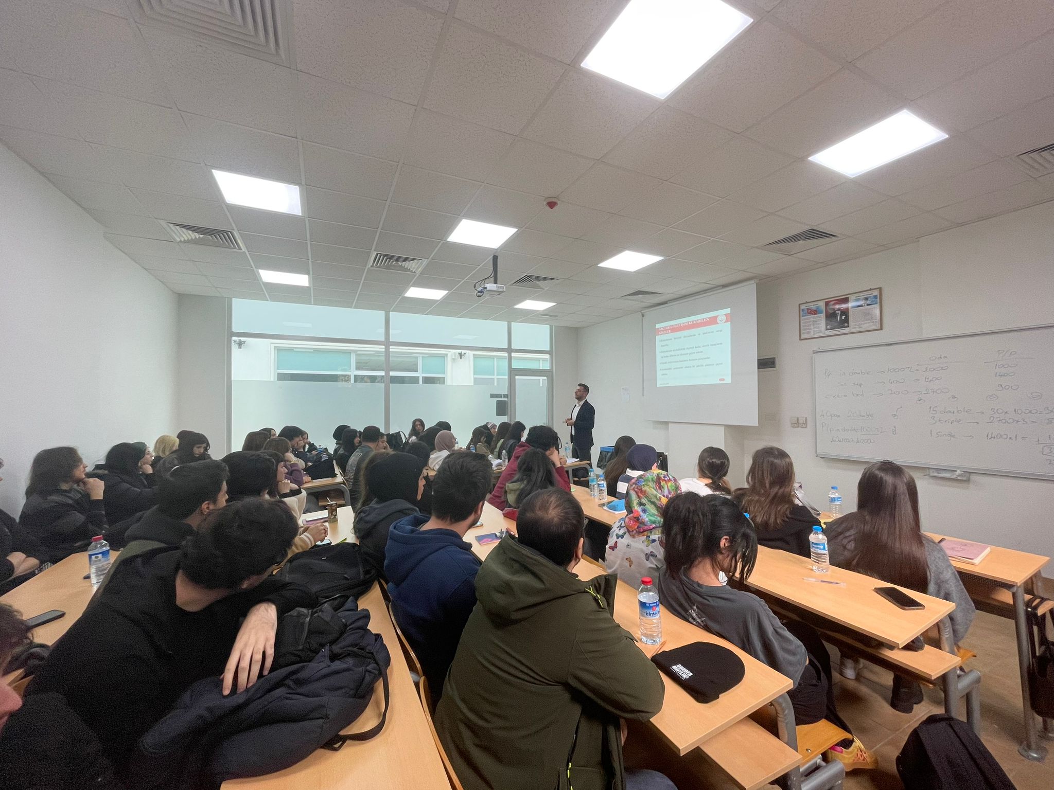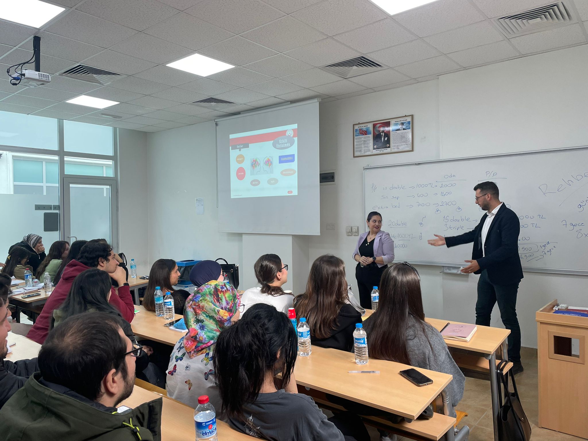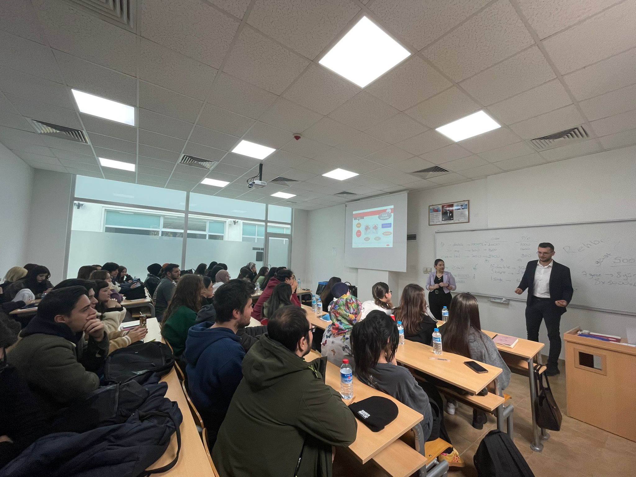 Eğitim semineri öncesinde SUBÜKAM birim temsilcimiz Dr. Öğr. Üyesi Nuray EKER tarafından merkezimizi tanıtıcı kısa bir sunum yapıldı. Sonrasında, Sakarya Aile ve Sosyal Hizmetler İl Müdürlüğü’nden Sosyal Çalışmacı Ahmet Yunus GÜRBÜZ tarafından gerçekleştirilen “İletişim ve Empati” başlıklı seminerde; iletişim becerileri, iletişimin önemli, etkili iletişim nasıl kurulur? empati nedir? gibi alt başlıklar ele alındı. Öğrenciler, seminer boyunca konuşmacı ile aktif bir etkileşim içinde oldular.