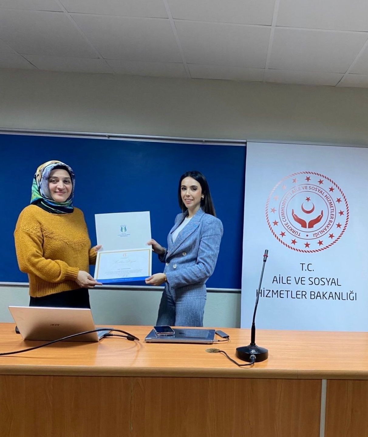 Programın sonunda, değerli katkılarından dolayı Sosyal Çalışmacı Elif Önal’a ve Neslihan Çınar’a teşekkür belgesi, SUBÜKAM birim temsilcisi Öğr. Gör. Dr. Arzu Sürekçi tarafından takdim edildi.