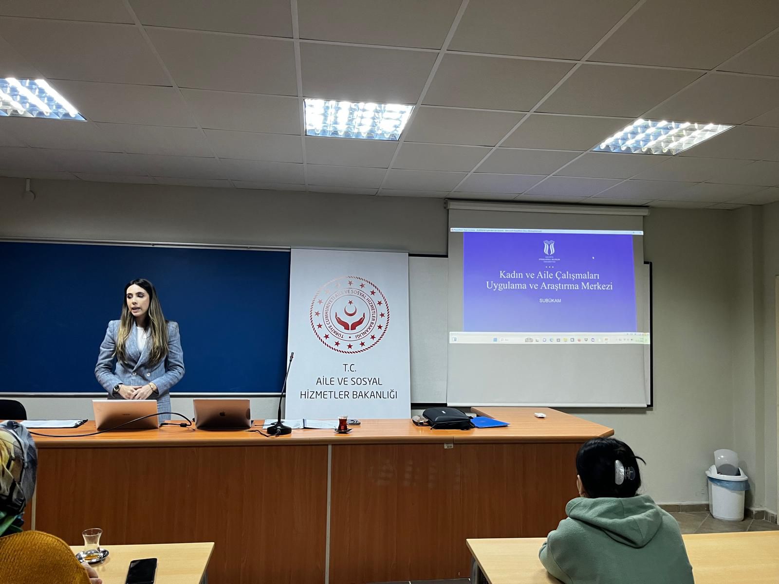 Etkinlik öncesinde SUBÜKAM birim temsilcisi Öğr. Gör. Dr. Arzu Sürekçi tarafından merkezin faaliyetlerine ilişkin kısa bir tanıtım sunumu yapıldı. Ardından Sosyal Çalışmacı Elif Önal tarafından verilen “İletişim ve Empati” başlıklı seminerde; etkili iletişim becerileri, empati kurmanın bireyler arası ilişkilerdeki önemi, duyguları doğru ifade etme ve karşılıklı anlayış geliştirme konularında bilgilendirici paylaşımlarda bulunuldu. Aynı kurumda görev yapmakta olan Neslihan Çınar da seminere katılarak etkinliğe katkı sağladı.