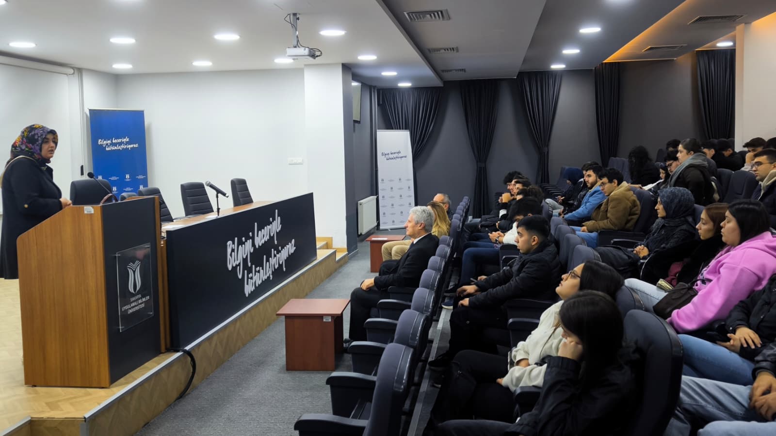 Seminer öncesinde, Kaynarca Seyfettin Selim Meslek Yüksekokulu Müdürü Öğr. Gör. Nafi Filiz kısa bir konuşma yaptı. Ardından, Sakarya Aile ve Sosyal Hizmetler İl Müdürlüğü’nden Psikolog Esra Dursun tarafından “Madde Bağımlılığı” başlıklı seminer verildi. Madde bağımlılığı ve bağımlılık türleri, bağımlılık yapıcı maddeler ve etkileri, bağımlılığın birey ve toplum üzerindeki sonuçları ve risk faktörleri konularına ilişkin kapsamlı bilgiler paylaştı.