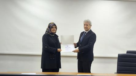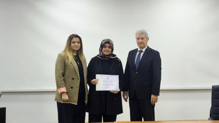 Etkinliğin sonunda, katkılarından dolayı Psikolog Esra Dursun’a teşekkür belgesi SUBÜKAM birim temsilcisi Dr. Öğr. Üyesi Hande Güneş ile beraber Kaynarca Seyfettin Selim Meslek Yüksekokulu Müdürü Öğr. Gör. Nafi Filiz tarafından takdim edildi.