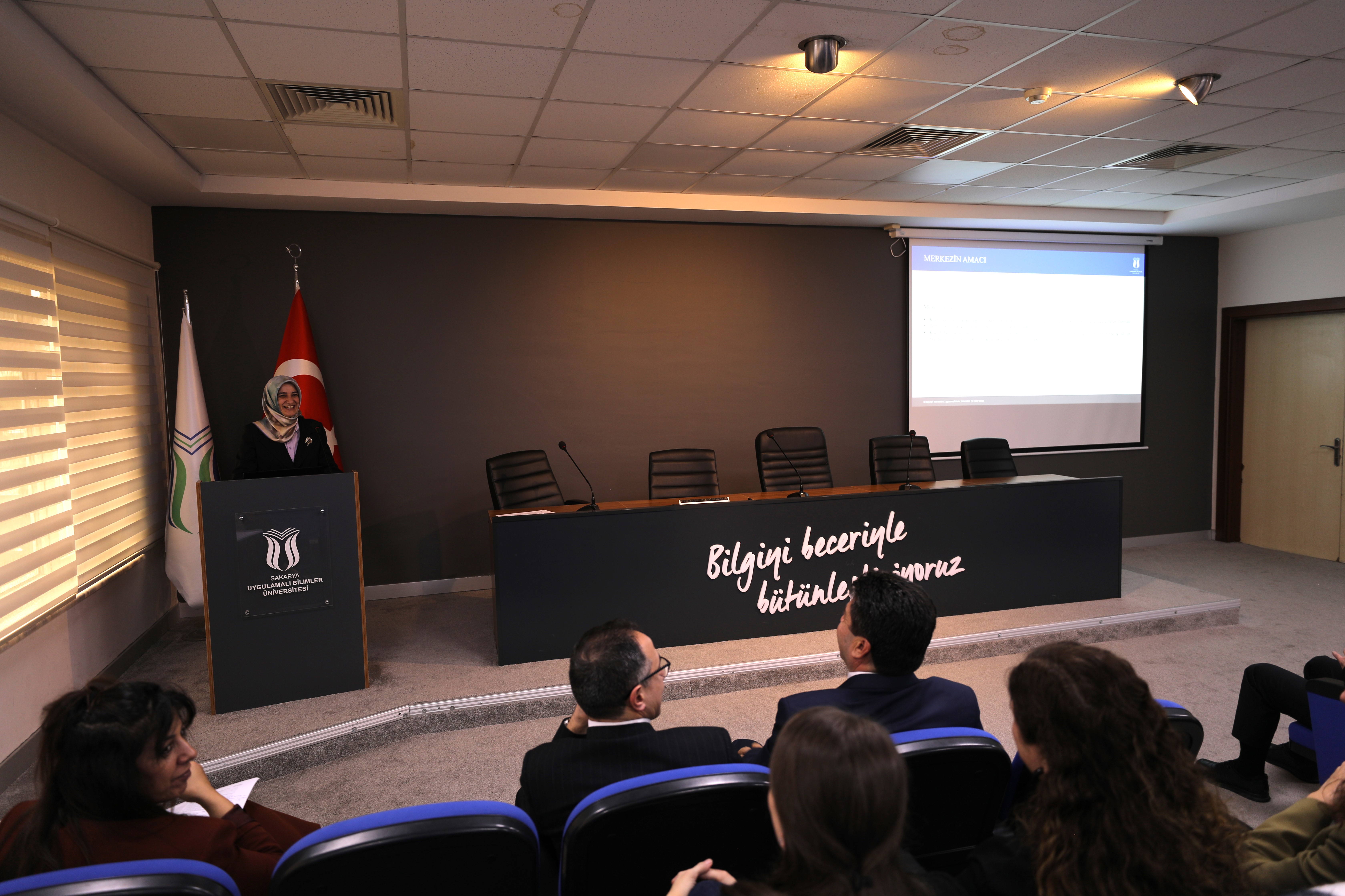 Kadın ve Aile Çalışmaları Uygulama ve Araştırma Merkezi Müdürü Prof. Dr. Betül Usta, merkezin 2025 yılı içerisinde gerçekleştirdiği faaliyetlere ilişkin kapsamlı bir sunum yaptı. 2025 yılının ilk altı ayında yürütülen çalışmalar dolayısıyla önceki Merkez Müdürü Dr. Öğr. Üyesi Hümeyra Taşçıoğlu’na teşekkür etti.
