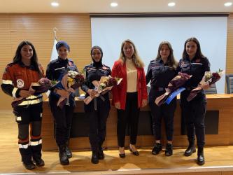 Etkinlikte, itfaiyecilik mesleğinde kadın olmanın önemi ve bu alandaki deneyimler katılımcılarla paylaşıldı. Konuklar, mesleğin gereklilikleri, işe alım süreçleri, mülakat aşamaları, eğitim süreçleri ve saha operasyonları hakkında detaylı bilgiler verdi.